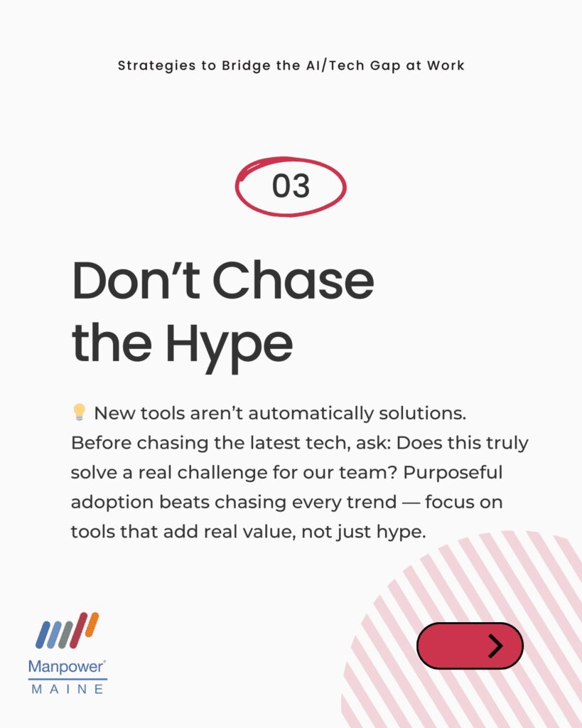Technology isn’t slowing down — and neither is the conversation around it. The goal isn’t to convince everyone to adopt every tool, or to pump the brakes on progress. It’s to build a workplace culture that respects differing perspectives, learns together, and uses technology intentionally.