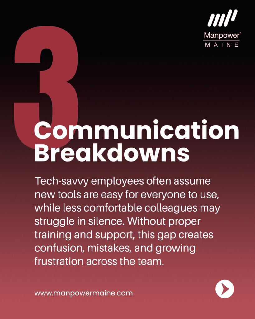 - Miscommunication: Tech-savvy employees may assume everyone’s on the same page when introducing new tools, leading to confusion or resistance.