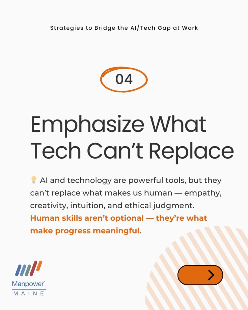 Technology is powerful, but it doesn’t replace emotional intelligence, creative intuition, or ethical judgment. Always celebrate and protect the human skills that matter most.