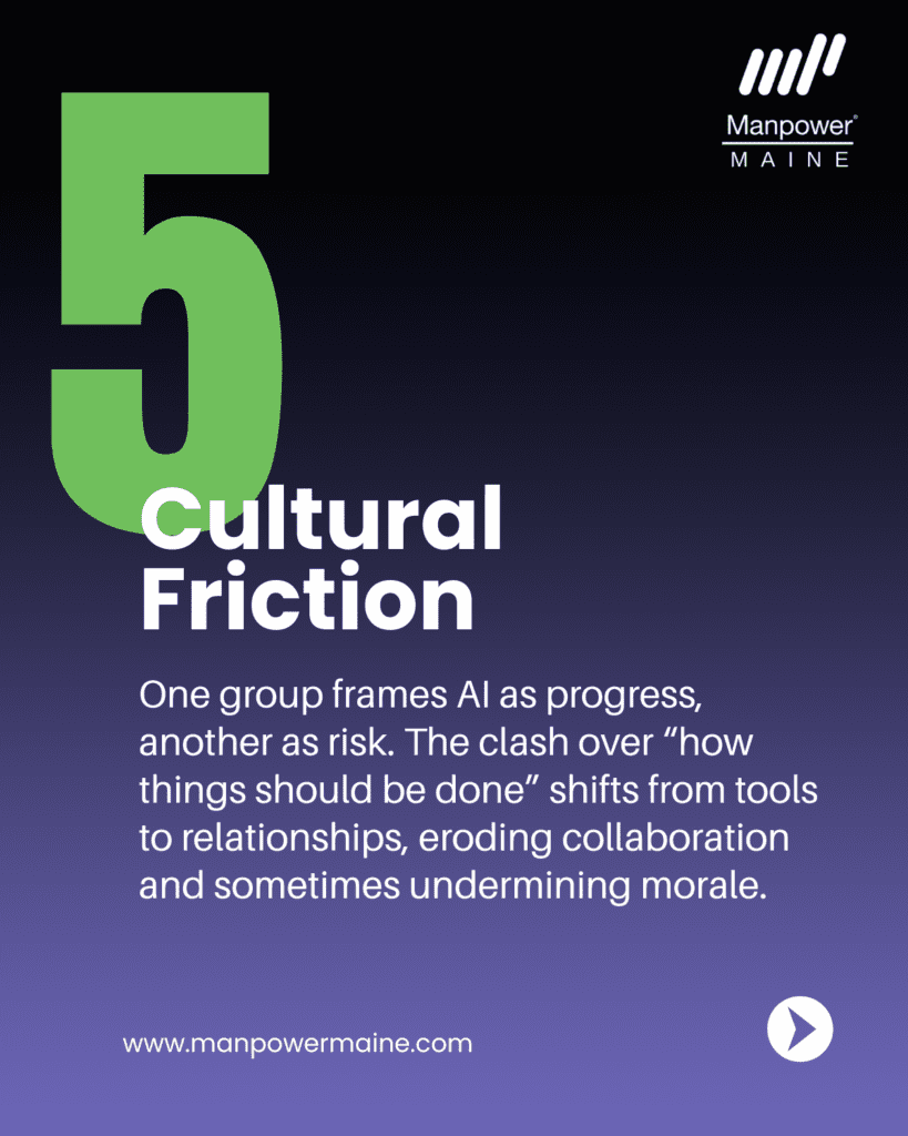 - Cultural friction: When one generation sees AI as progress and another sees it as threat, collaboration suffers.