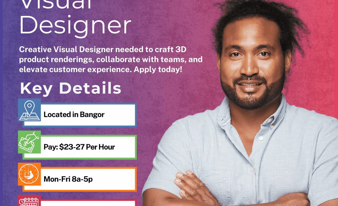 To be considered for this Visual Designer opening in Bangor, please contact us using any of the methods below. We look forward to working with you.