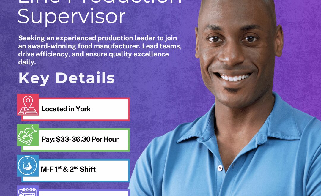Are you an experienced production leader ready to make your mark with one of the most awarded food brands in the region? We’re currently hiring a Line Production Supervisor in York, Maine for 1st or 2nd shift, Monday through Friday, with occasional Saturdays. This is a direct-hire opportunity offering a comprehensive benefits package and $33 – $36.30 per hour.
